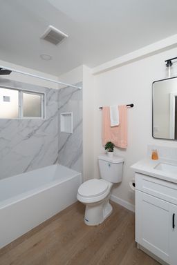 Beautifully Renovated 3 Bedroom 2 Bath in Rosemead!! This freshly remodeled 1st floor unit offers a modern layout with 3 Bedrooms and 2 full bathrooms. The kitchen features a gas stove and oven plus a dishwasher, while laminate flooring and recessed lighting flow throughout the living areas. With 2 Assigned parking spaces and Water included. Laundry hookups are included for convenience. Located in Rosemead, this updated apartment combines contemporary finishes with practical amenities.