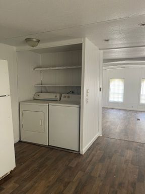 There is a large living room and a large kitchen where a washer and dryer are located, and they are included!