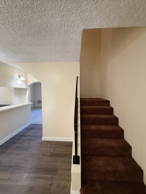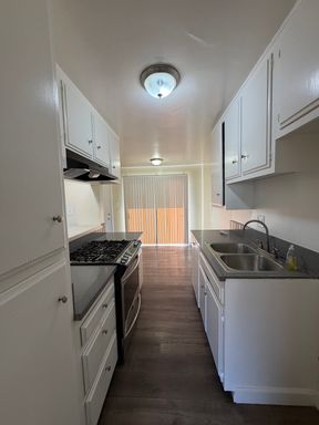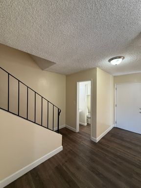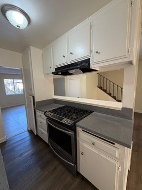 Spacious 3 Bedrooms, 1.5 Baths town home style apartment with fresh new paint, laminate flooring throughout the downstairs, large living room. Apartment comes with a gas cook top and gas wall oven and wall A/C units. Property is near the 605 freeway, shopping center and schools.