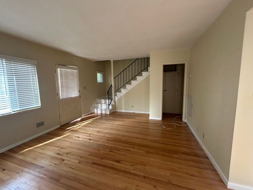 Come look at this beautiful town style floor plan apartment in a garden style setting. This 2 bedroom 1 1/2 bathroom is just over 1,000 square feet has been freshly painted. New windows and blinds. Living room and dining room are located on the lower floor of the apartment. Original hardwood flooring in the living room and dining room. Kitchen has laminate flooring and has tile counter tops with double sink and wall mount style faucet. Kitchen has enough cabinets and drawers. Kitchen comes with new refrigerator and stove. The half bathroom is located on the lower floor of the apartment. The apartment gets enough natural sunlight though out the day. Second level floor plan consist of full bathroom and two bedrooms. Upstairs bathroom has new tiles on shower walls and counter top tiles on vanity. Bathroom flooring has original tiles. New shower valve and handles installed along with shower head. Upstairs bathrooms have enough closet space and has original hardwood flooring. Come see this town style apartment with lots of charm and looks in a great garden style setting. Pictures do not show the real beauty of this town style apartment.